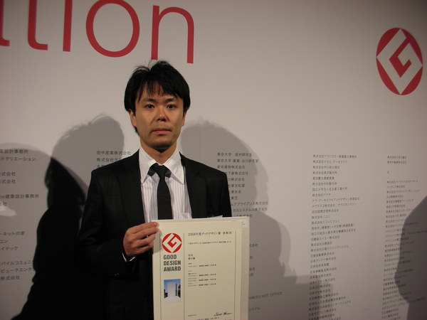 先日、東京ミッドタウンにて2008年度のグッドデザイン賞の受賞式がありました。当日は、大勢の関係者の方々などがつめかけてとても活気に満ち溢れていました。他分野のデザイナーの方なども来ていました。受賞式のほかに、受賞者の審査投票による、大賞選出も行われて、私も投票しました。