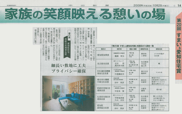 本日、中日新聞紙面にてすまいる愛知住宅賞が発表されました。